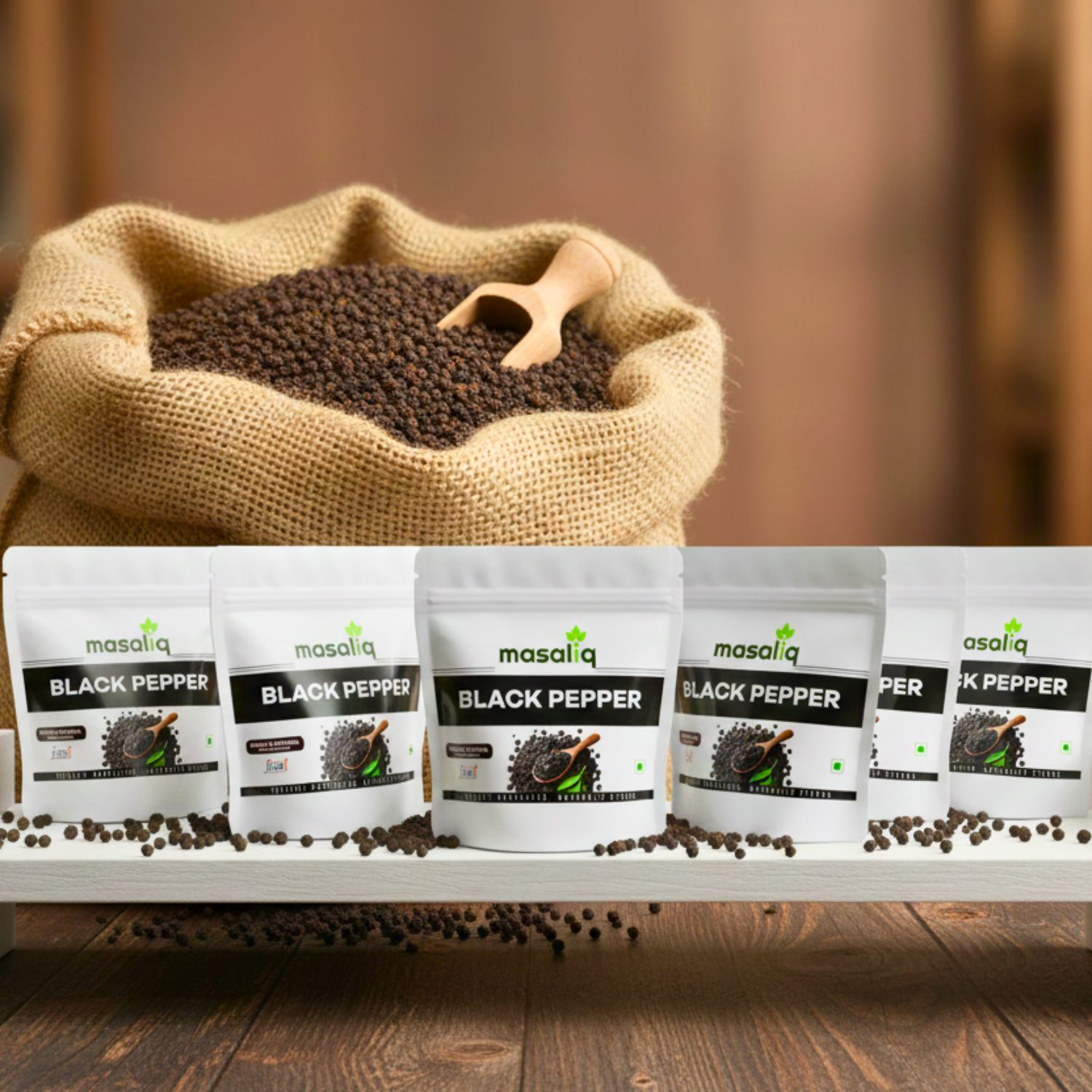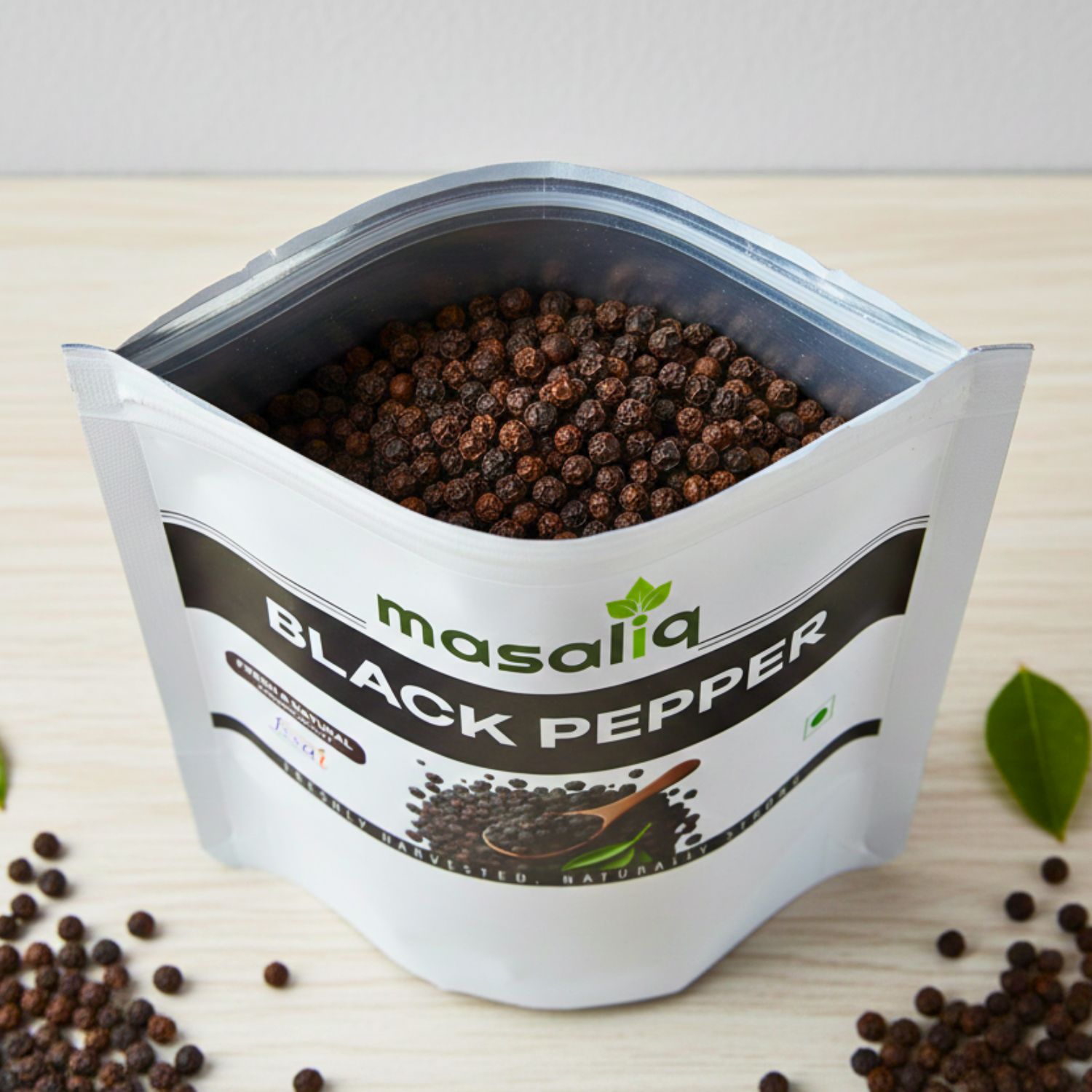 Our Black Pepper (Coorg Origin) is sourced directly from the finest estates of Coorg, known for producing some of India’s most aromatic and high-oil pepper. Each peppercorn is handpicked, naturally sun-dried, and graded to ensure maximum freshness, heat, and flavour.